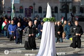 *A TÉRdeplő rózsafüzér imádságokon a hívő férfiak együtt, térden állva