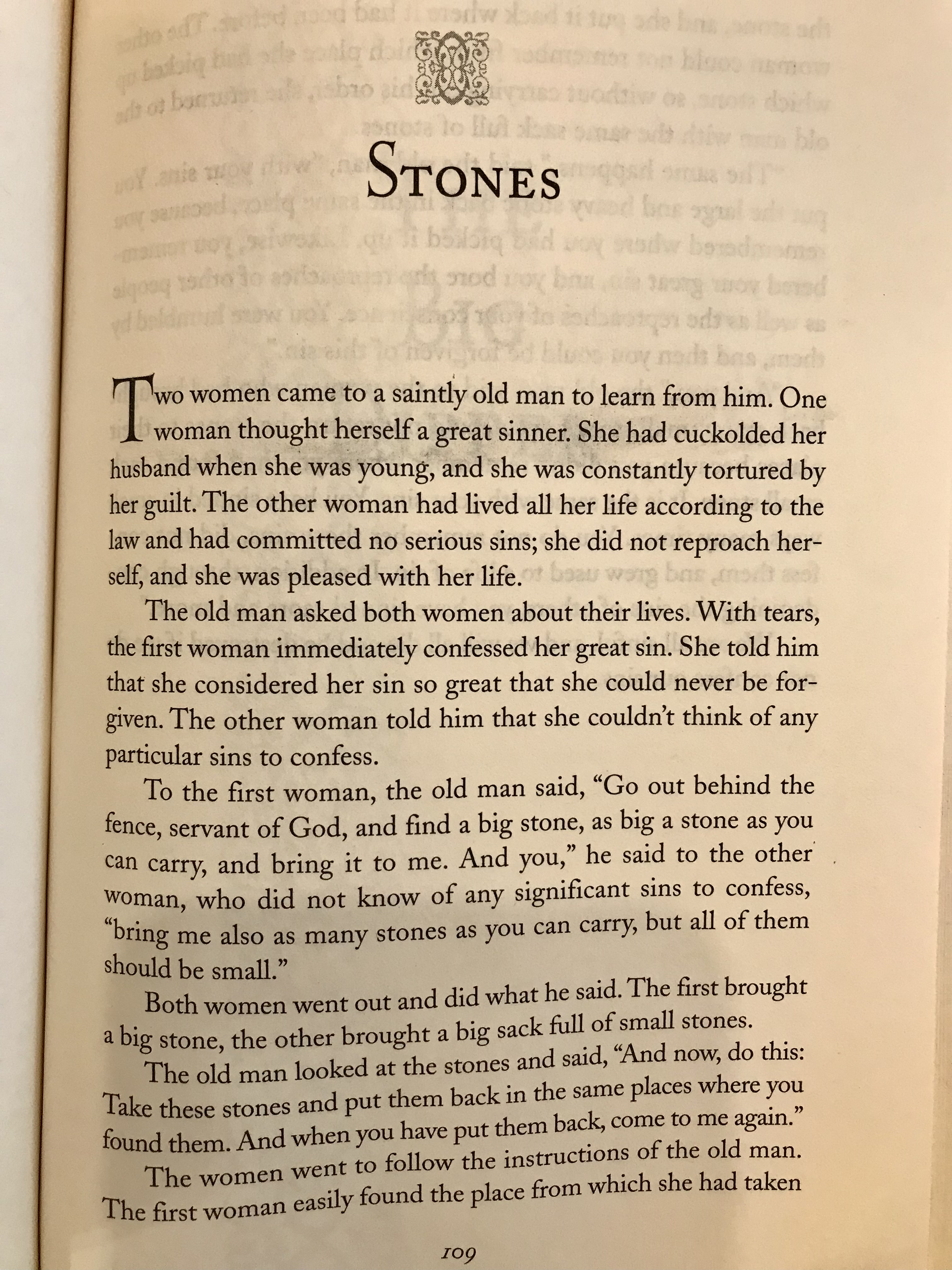 A vidámság szent című részben az orosz író így fogalmaz: „Politikai fejtegetést, vitát, gáncsoskodást hallottam, és átmentem a másik szobába, ahol gitárkíséret mellett énekeltek és nevettek. S rájöttem, hogy a vidámság szent. A vidámság, az öröm: az isteni akarat egyik beteljesülése.”