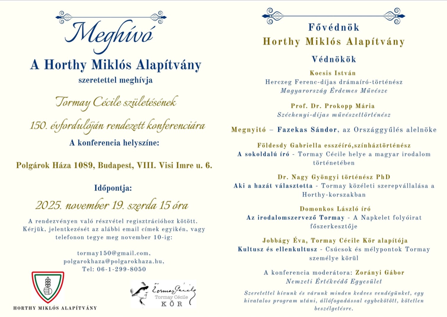 Subject: Meghívó konferenciára Tormay Cécile 150. születésnapja alkalmából