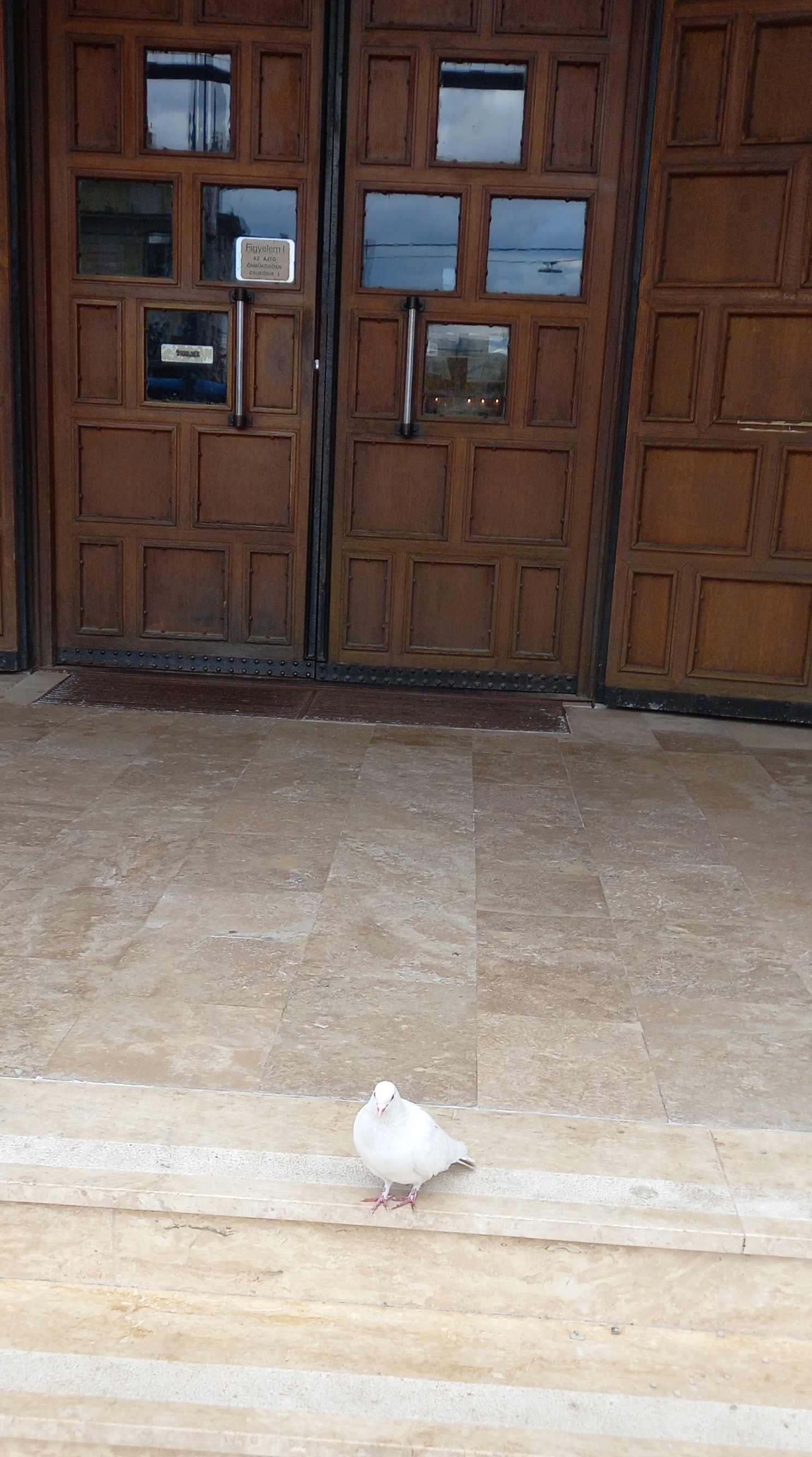 A Bosnyák téri templom lépcsőjén ez a barátságos lény fogadott, amikor
