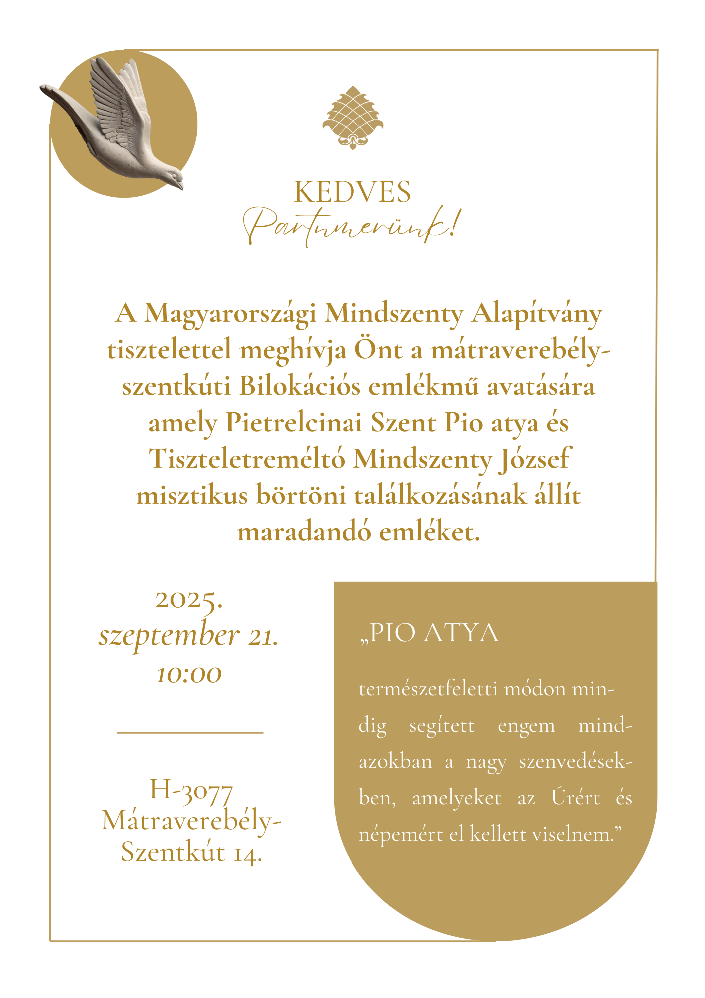 *Időpont*: *2025. szeptember 21., 10.00 óra,* a Nemzeti Kegyhely Szent Pio