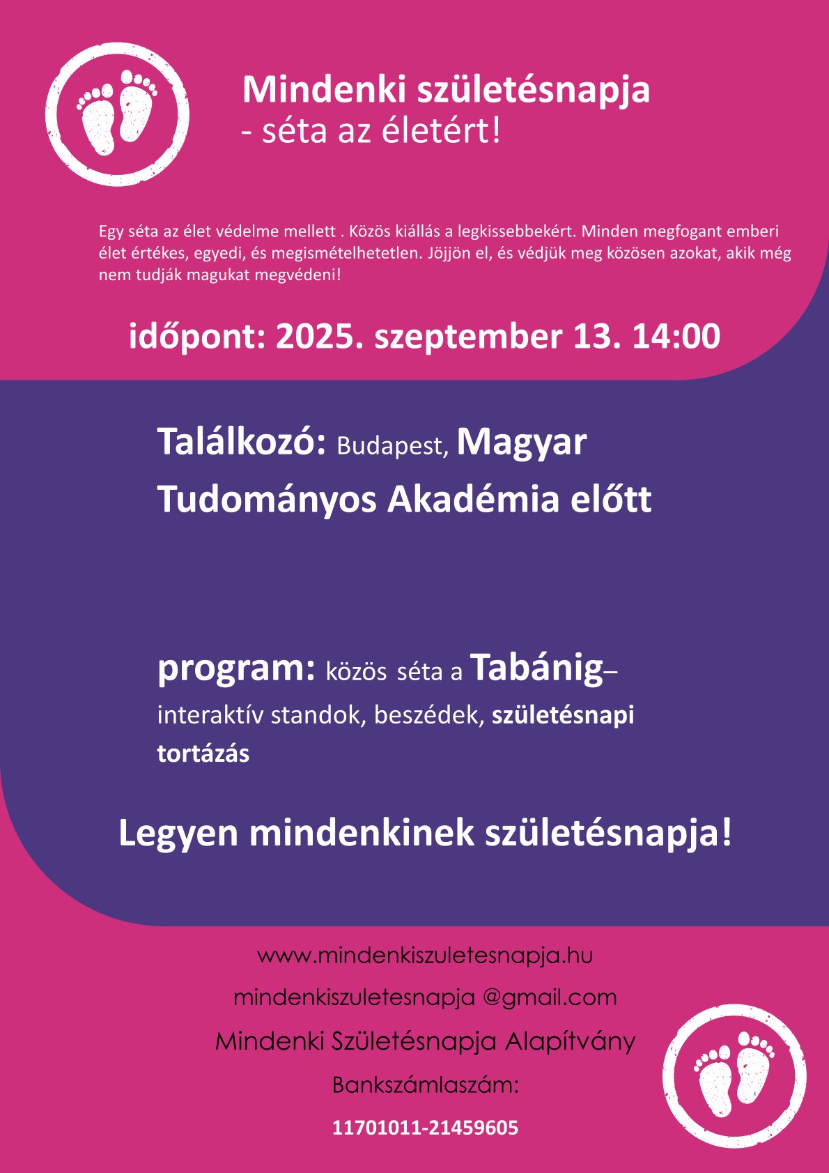 szombaton 14:00-17:00 Mindenki születésnapja - Séta az Életért