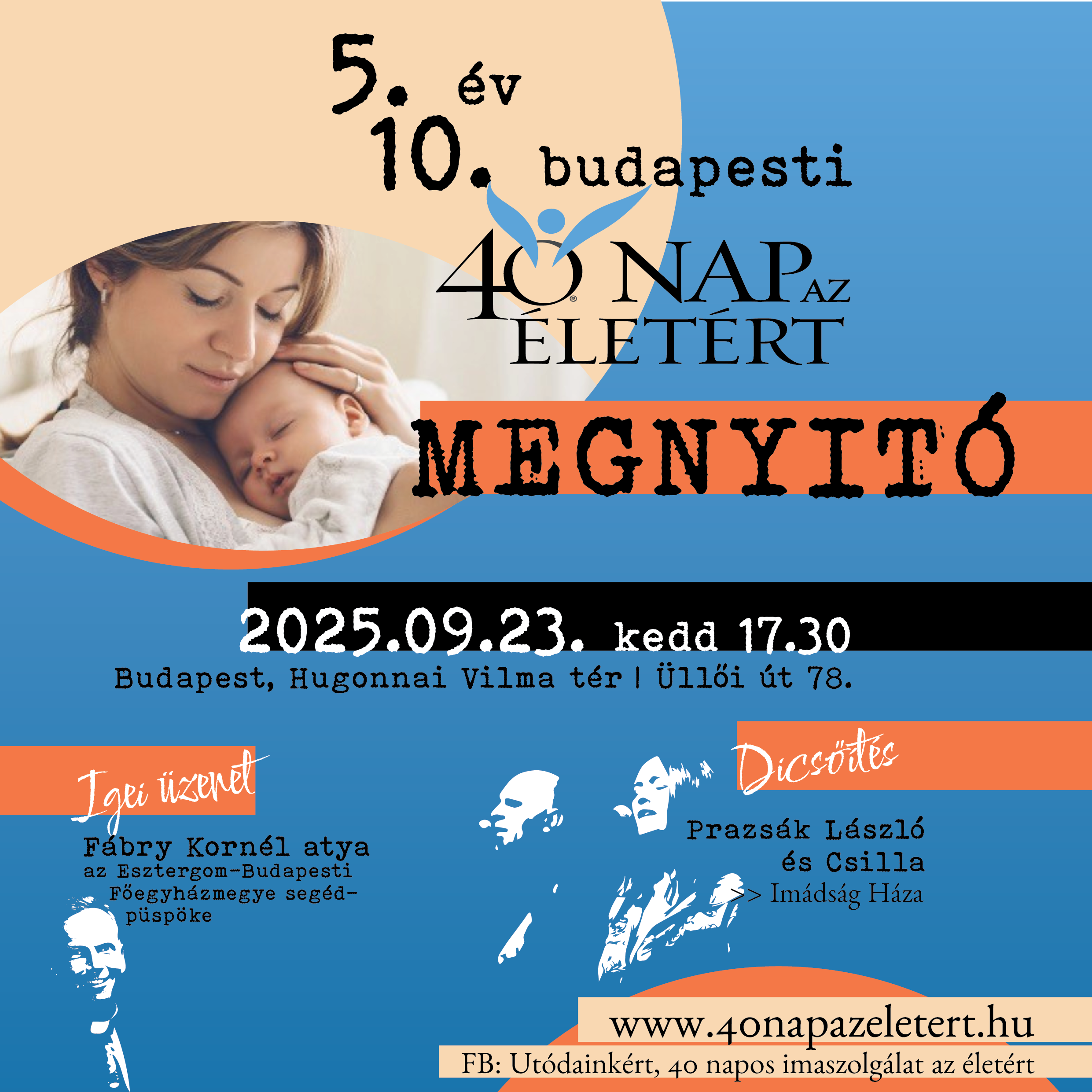 · *40 Nap Az Életért 10. budapesti Megnyitó 2025. szept. 23., kedd, 17:30